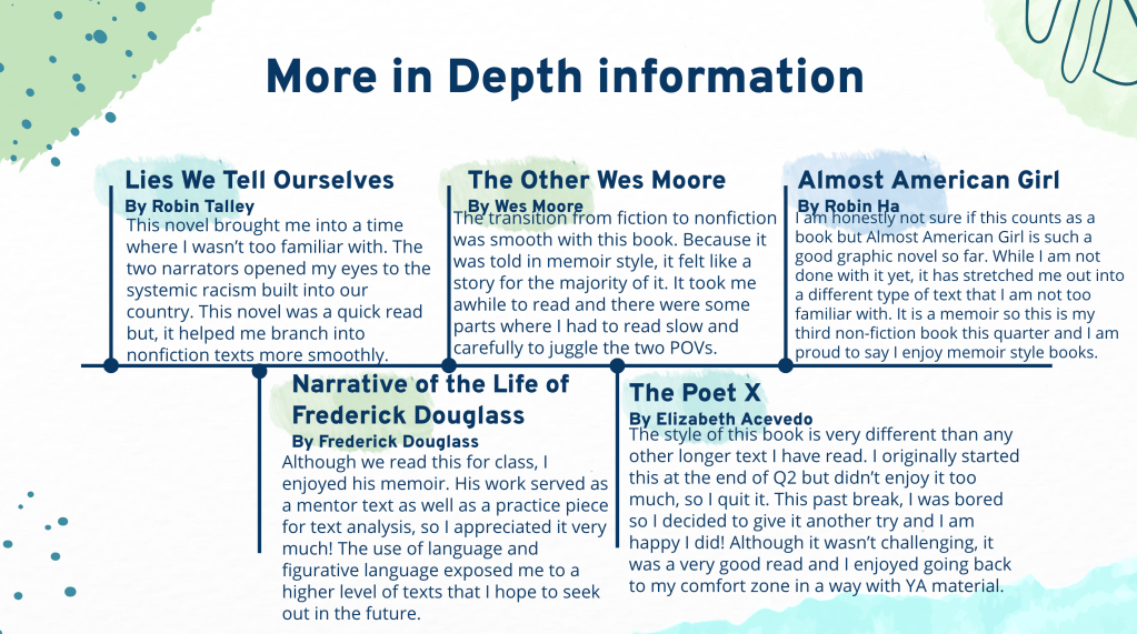 My student’s third quarter independent reading reflections.